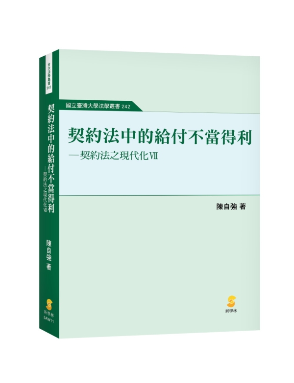 個人在2021年出版的「契約給付之返還關係─契約法之現代化VI」一書,從法律史、比較法、國際發展趨勢及我國契約解除規定之法律適用等觀點,廣泛地檢討契約解除回復原狀規定,並從解釋論及立法論對解除回復原狀規定之解釋適用及法律修正提出建言。為使契約解除回復原狀規定適用於其他契約給付返還,不僅符合給付返還之立法目的,更能不破壞雙務契約之本旨,實際適用上無窒礙難行之處,該書更與不當得利效果規定進行比較。契約給付返還問題上最棘手的原物返還嗣後不能的問題,該書也分別就適用契約解除回復原狀規定及不當得利返還規定進行更詳細而深入分析與檢討。最後,對以契約解除回復原狀為基地的統一的給付返還關係的規定,勾勒出將來的藍圖。