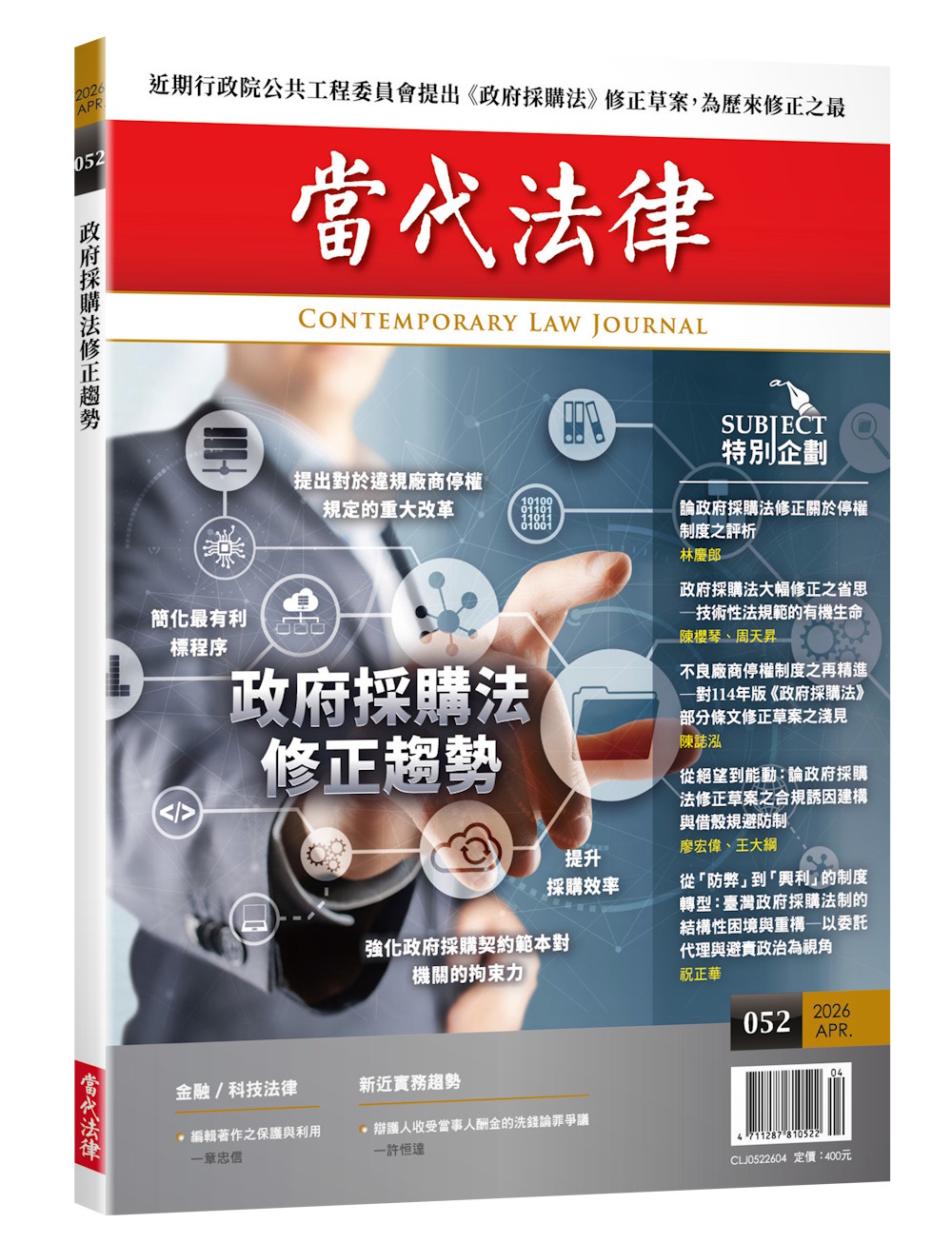 本期《當代法律》專題邀請學者及專家,討論【政府採購法修正趨勢】議題:
