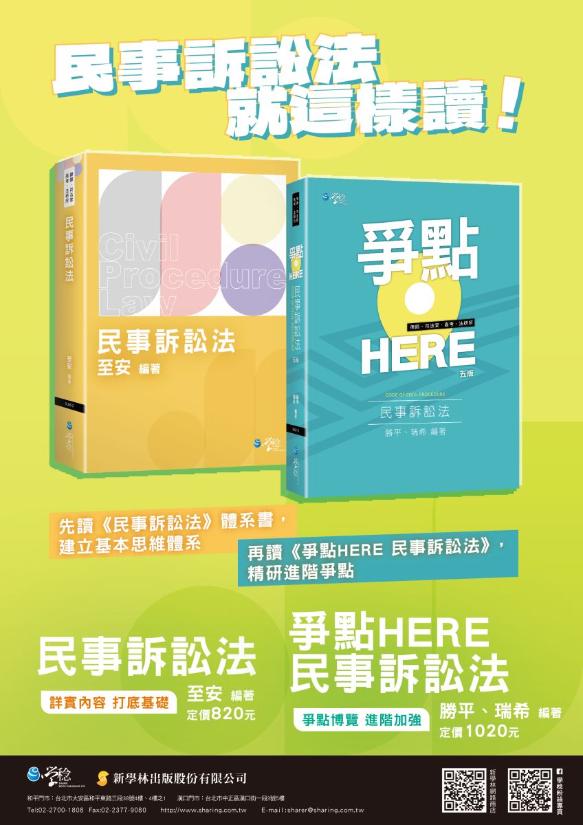 ►加購優惠:民事訴訟法,就這樣讀!(進入到購物車,享有加購優惠折扣)