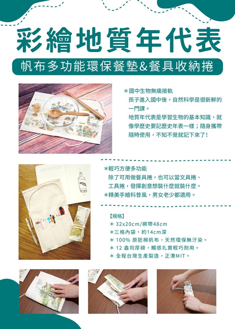 《彩繪地質年代表》帆布多功能環保餐墊&餐具收納捲-加購價