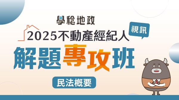 購買單科加購2025年不動產經紀人總複習班(共6堂),加購價300元