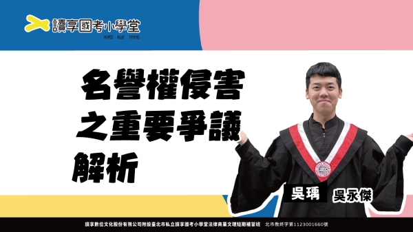 如果同學想進一步掌握近期最夯的名譽權侵害議題,順便聽聽老師分享答題技巧,千萬不要錯過這次的講座!