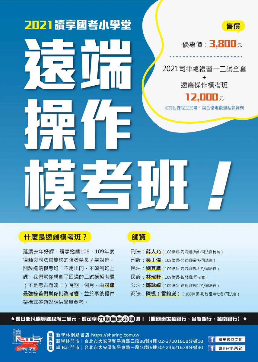 本課程加贈:2021司律二試考前猜題講座
