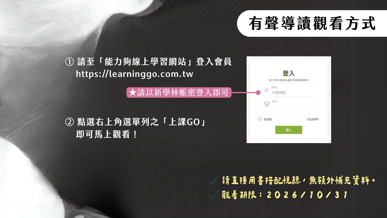1. 付款完成後,有聲導讀將於2-5個工作天內開通,開通後會email給您觀看連結。