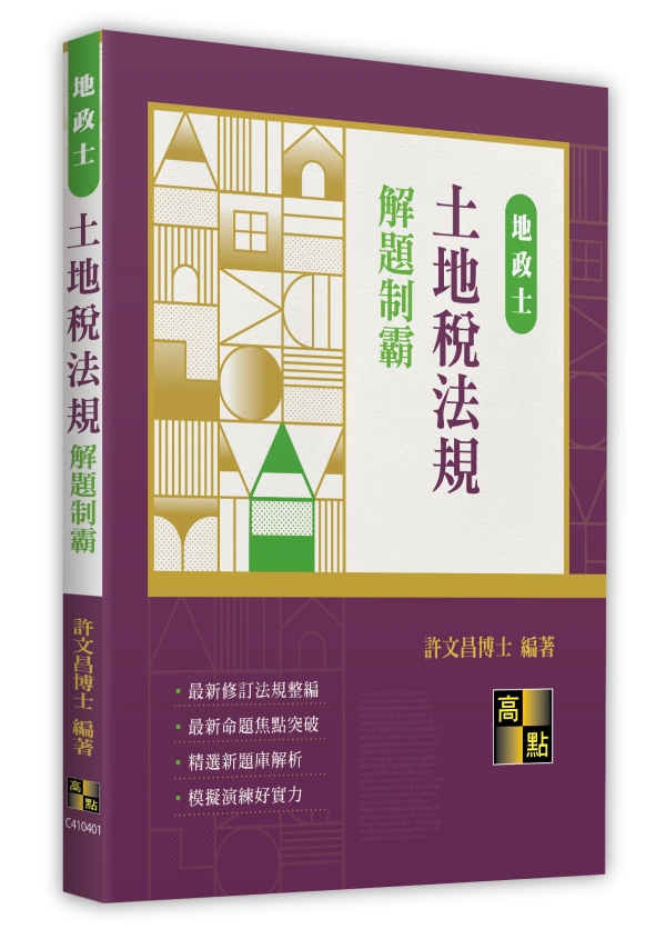 本系列書共三本,一為土地法規解題制霸;二為土地登記實務解題制霸;三為土地稅法規解題制霸。
