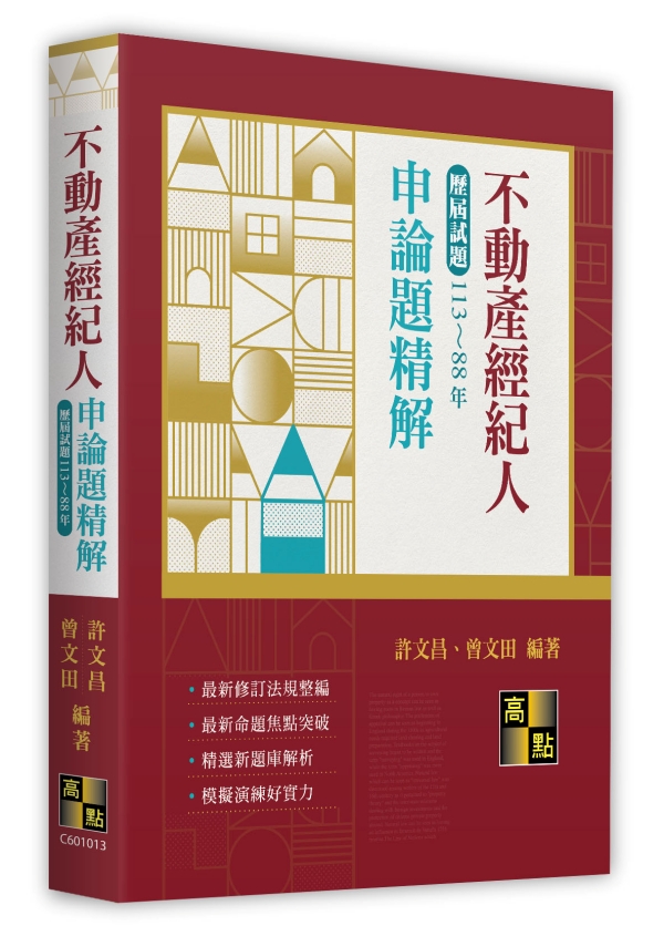 本書內容收錄113~88年不動產經紀人歷屆申論試題,除逐題擬答並以Key Point提示考點、說明外,並預測其再出可能性,希望提供一本活用的考古題參考書。