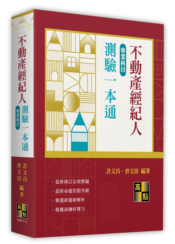 本書之第一部分土地法規、第二部分土地相關稅法、第三部分不動產經紀相關法規及第四部分不動產估價由許文昌老師編寫,建議讀者先逐條詳悉法條,了解原委後立即練習附隨各法條之後的歷屆試題,效果奇佳。第五部分民法由曾文田老師編寫,民法試題往往以實例題型態出現或一個題目須引用數個法條始能正確作答,為便於查閱法條並歸納歷屆試題,爰將歷屆試題打散並按民法條文章節編排,讀者可快速了解命題重點。