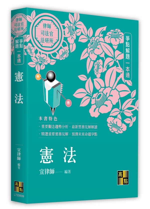 從釋憲程序、基本權利與政府體制,將歷年律司、研究所考試的重點做提醒,並且附上近年的重要考題作參照,加深考生記憶,提升作答實力。